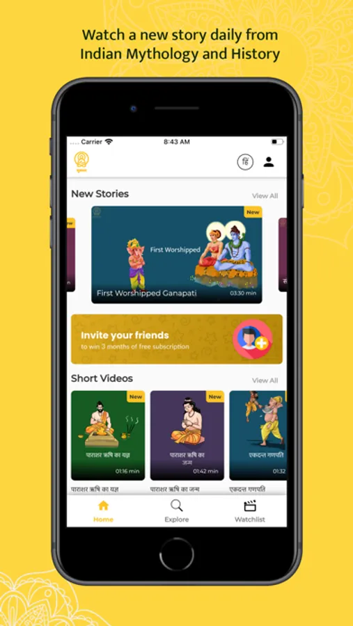 We release one new video everyday at the beginning of the day which tells Pauranik Kahaniyan in less than one minute which are easy to watch and easy to share. The stories are of the nature that they are likely to elevate your rest of the day.