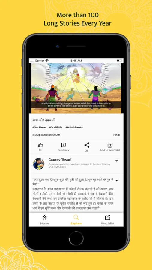 We are sure this app will enhance your knowledge of ancient Indian culture and will make you appreciate our heritage even better. Every Indian should download this app and watch these stories. We do not even need too much time commitment, just 2-3 minutes every day.