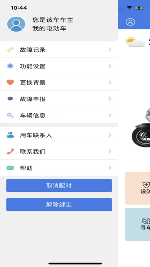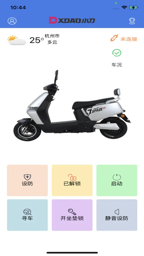 主页模块中,你可以了解到电动车的码数以及电量等信息,并且可以控制报警器。