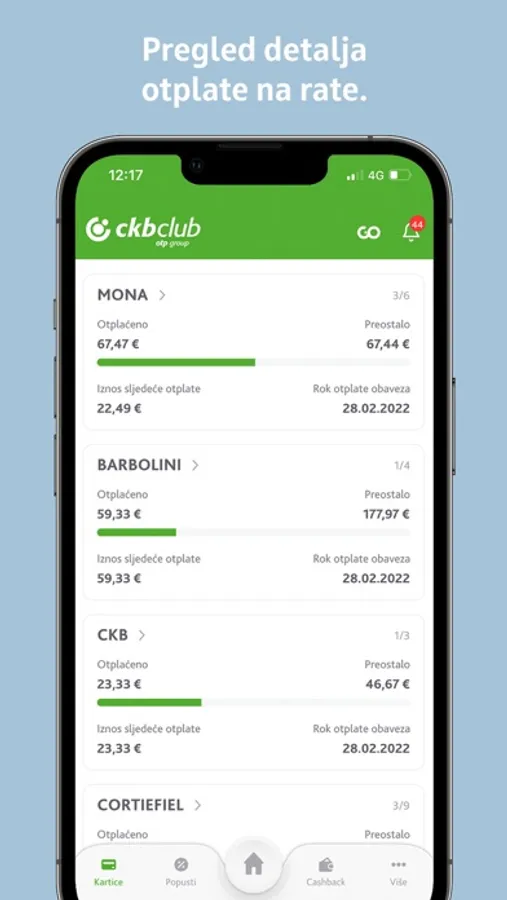 -Cashback - the ability that by using the application and paying with CKB cards win Cashback Through the CKB Club application, they can see all active campaigns, their progress in achieving cashback for a specific campaign, as well as how much money they have earned so far.