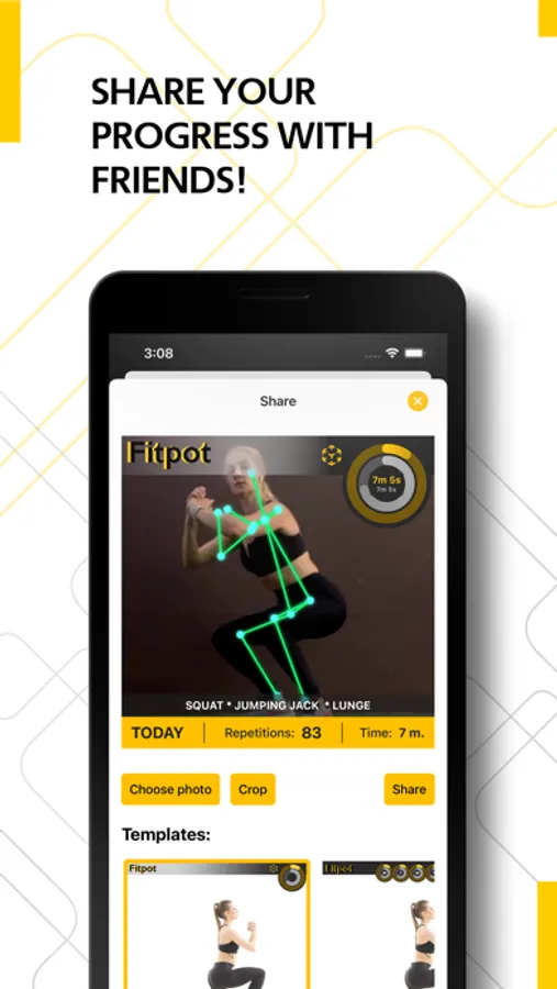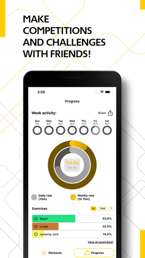 Just provide the target number of exercises and ask to share the result. Recognition technologies of Apple AI will calculate the result, and you will always know the fit progress. Make the process funny and joyfull. Organize trainings as a challenge or provide prizes for weekly trainings. Start with one minute training per day for you friend.
