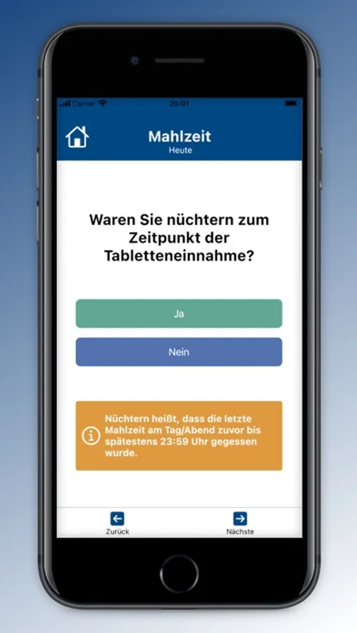 Die Navigation im MedSurv ePRO wird durch die Art der Studie definiert. Hierbei stehen starke Navigations-Assistenten zur Verfügung, die z.B. den Zugriff auf Daten vom Vortag steuern oder den nächsten Eingabe-Zeitpunkt vorgeben.