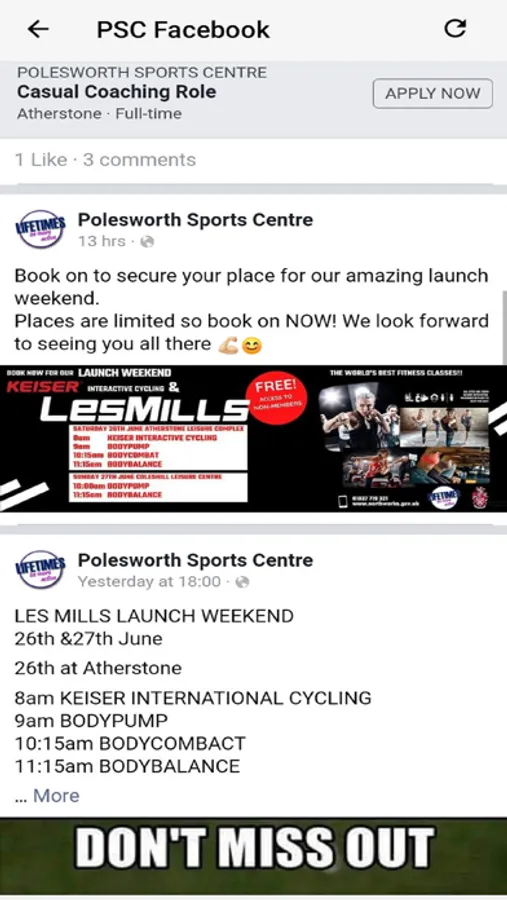 Share fitness classes, news, centre information and offers with your friends and family at the touch of a button.