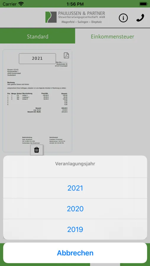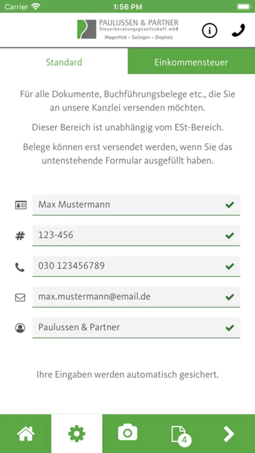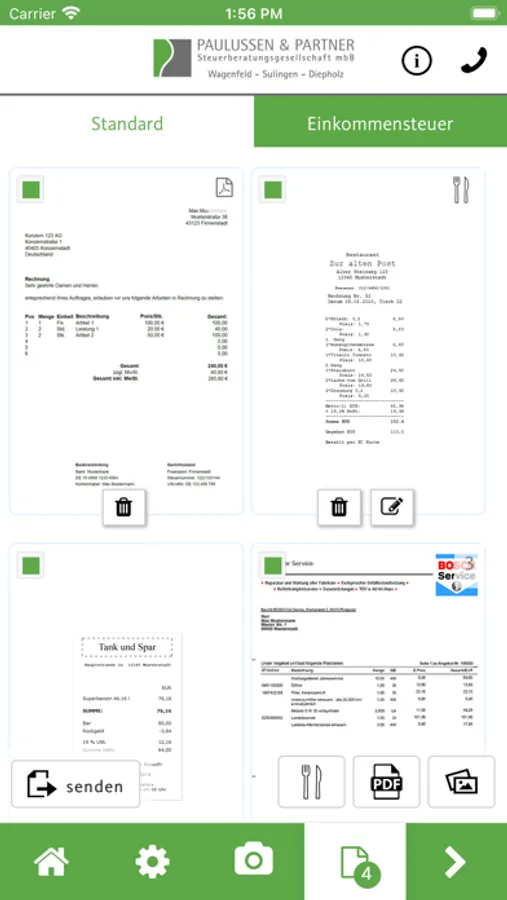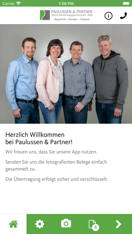 In dieser App senden Sie Belege, Dokumente, Unterschriften und andere wichtige Schriftstücke sicher, schnell und einfach an uns.