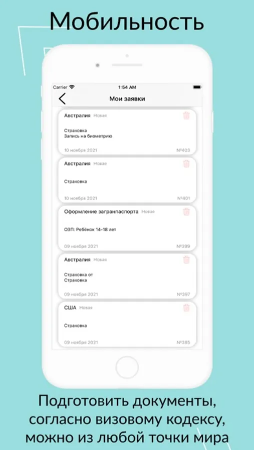 - МОБИЛЬНОСТЬ- Подготовить документы, согласно визовому кодексу, можно из любой точки мира - достаточно иметь интернет и телефон. Тебе больше не нужно бегать по городу. В личном кабинете ты увидишь полный цикл движения своих документов.