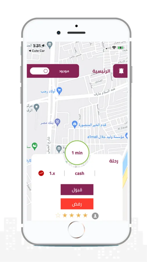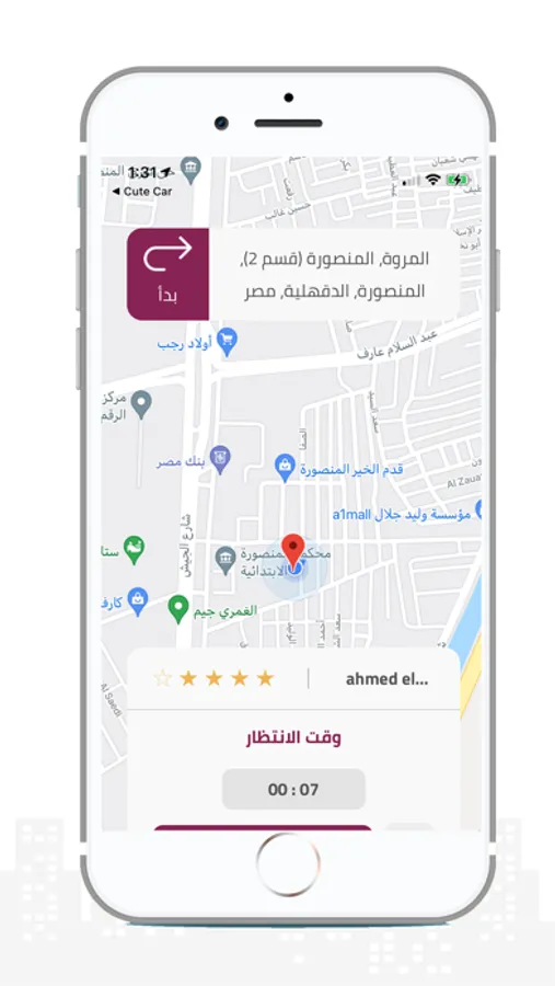 Cute Car : هو تطبيق الكتروني متخصص في تقديم خدمات توصيل الأشخاص عن طريق مركبات النقل المختلفه .