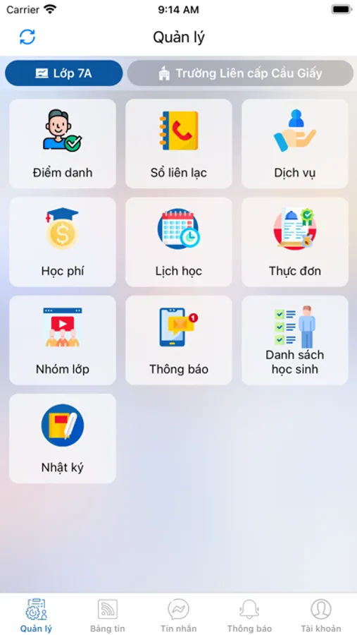 - Xem, cập nhật tình hình điểm danh, học tập của học sinh, gửi Sổ liên lạc đến phụ huynh