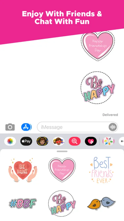 • Tap the icon on the lower left corner and then the plus icon to access the App Store for iMessage. Tap Manage tab and find 'Happy Friendship Day Stickers to add it.