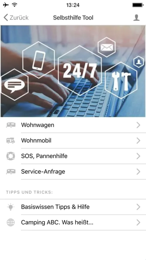 Dieses App beinhaltet wertvolle Informationen rund um das Thema Camping und Caravaning. Neben Einweisungsvideos für die Hersteller Bürstner, Carado, Fendt, Hobby und Hymer gibt es auch ein Selbsthilfe-Tool, mit welchem Sie sich selbst weiterhelfen und viele Fehler finden können.