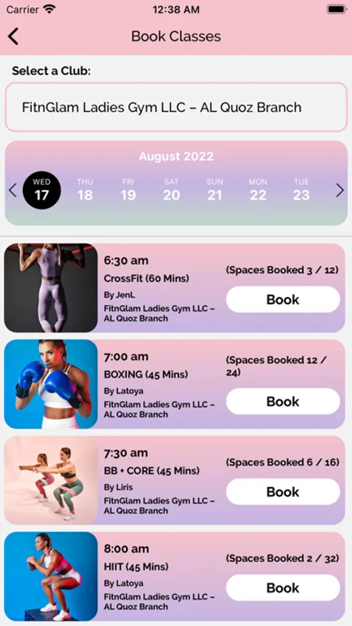 - Book group exercise classes