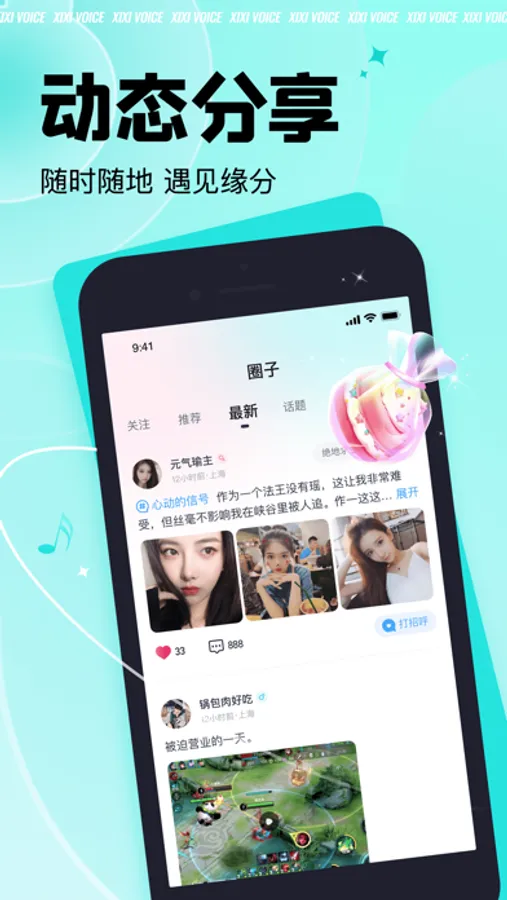 西西交友是一款集语音聊天、声音交友、音乐陪伴为一体的语音交友app。在这里你可以同时与多位小哥哥小姐姐进行连麦互动,一起玩一起聊一起嗨,玩转声音的魅力。你也可以找个人安安静静陪你唱一首歌或聊一宿天...在这里你可以发现世界的美好,记录身边的琐碎。
