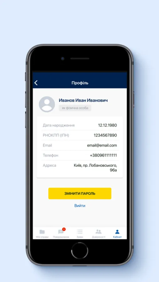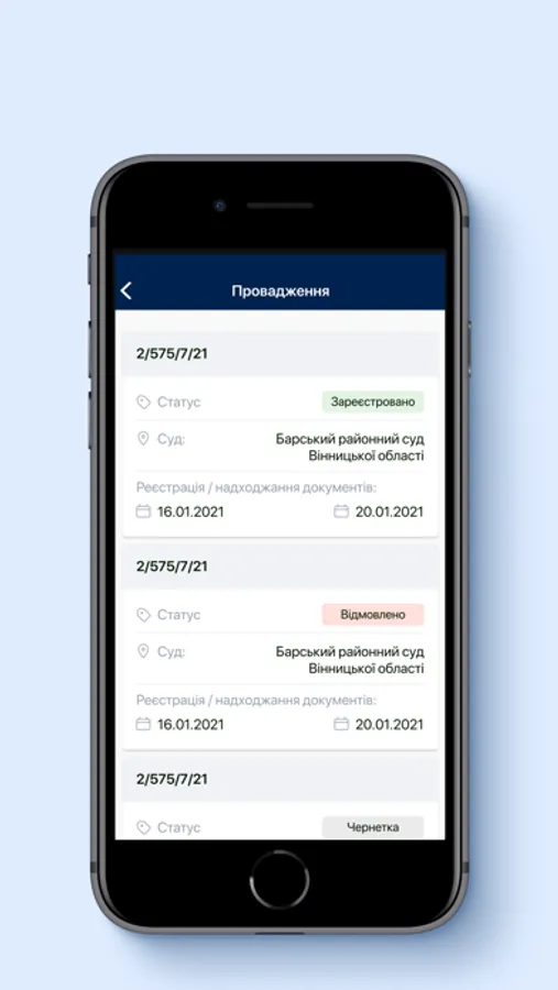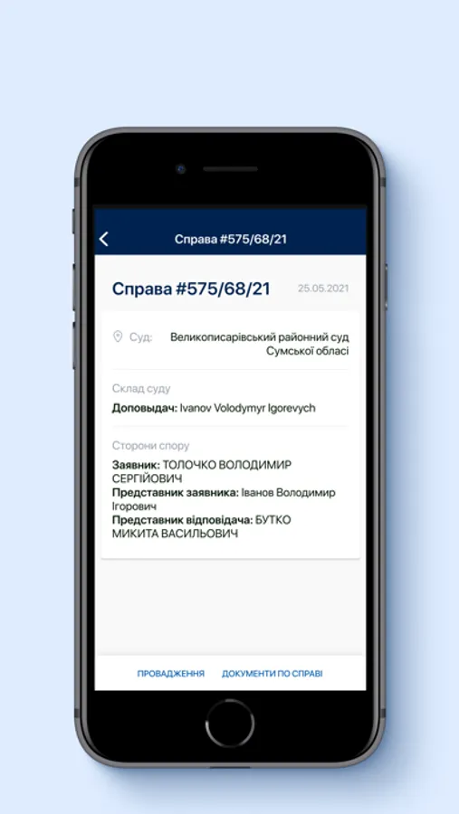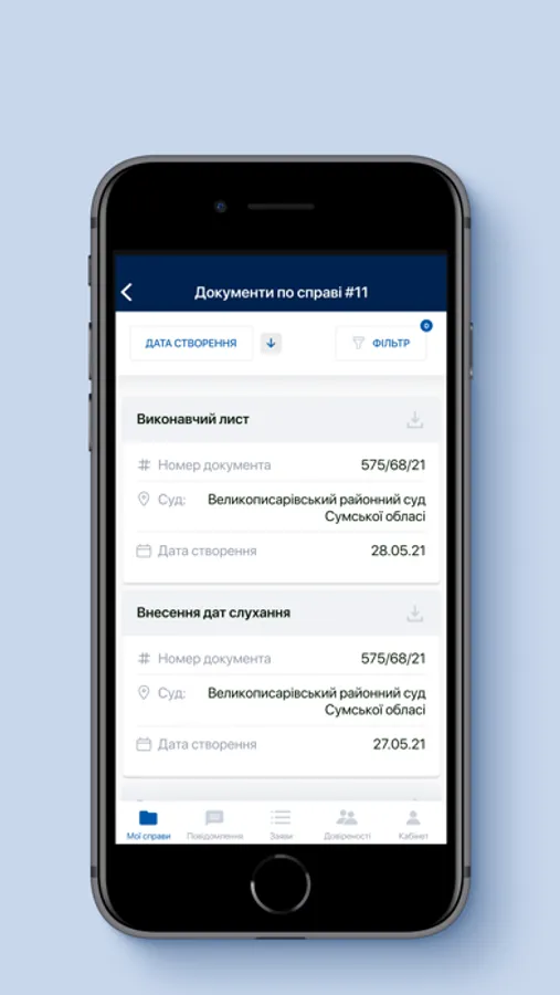 • отримувати пуш-повідомлення про надходження до кабінету нових документів та зміну стану справ, у яких Ви є учасником чи учасницею;