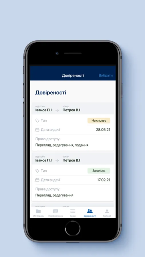 • переглядати довіреності та ордери, що знаходяться в вашому кабінеті, анулювати довіреності та ордери, які Ви видали.