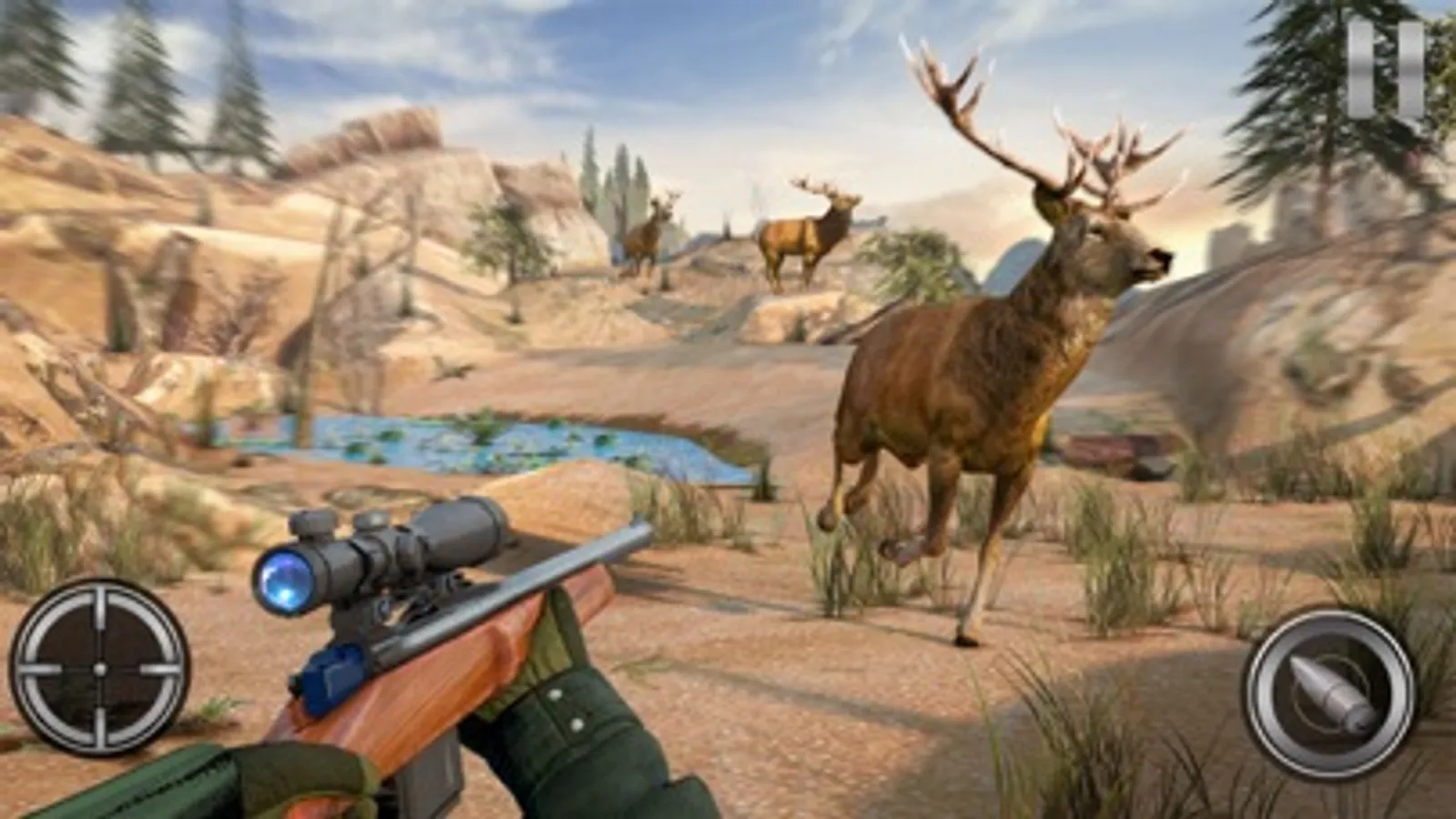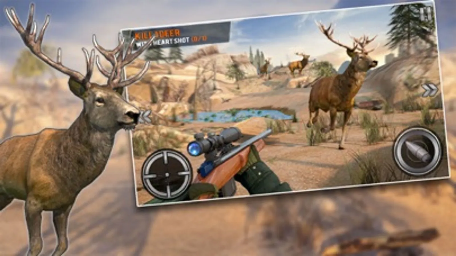 - Realistic animated deers to hunt.