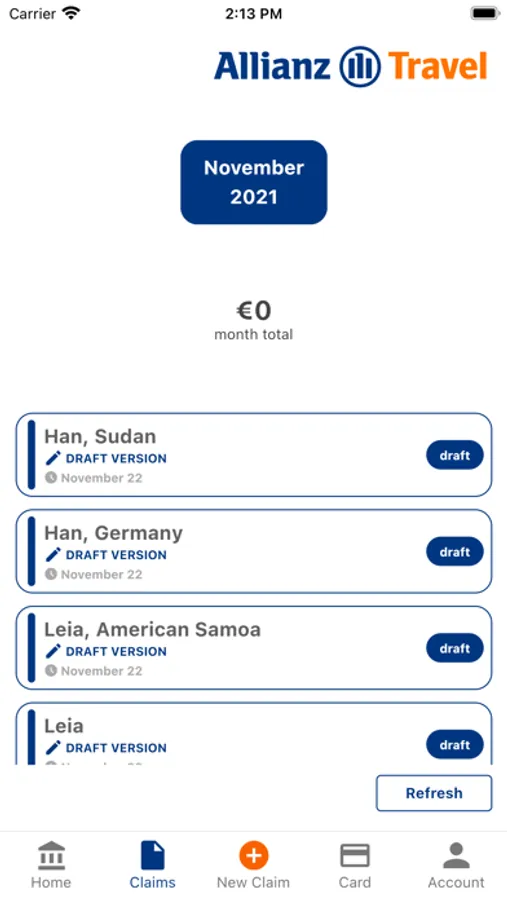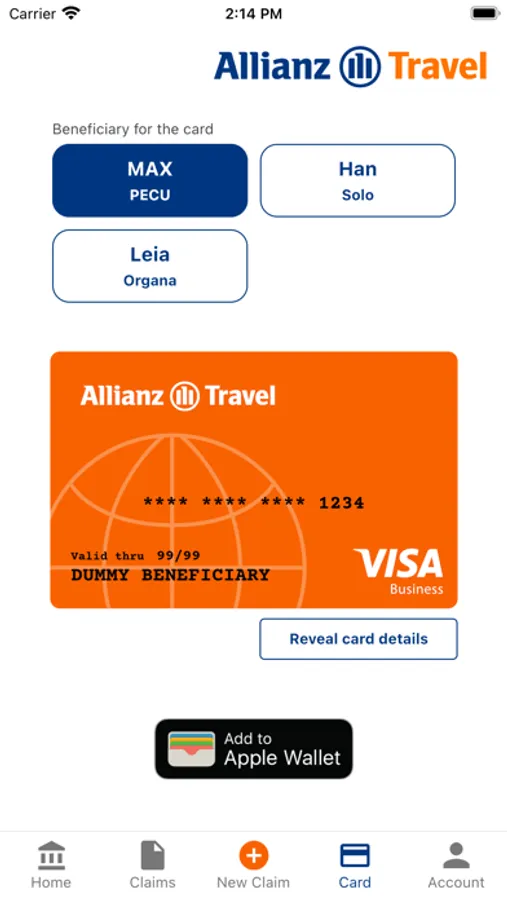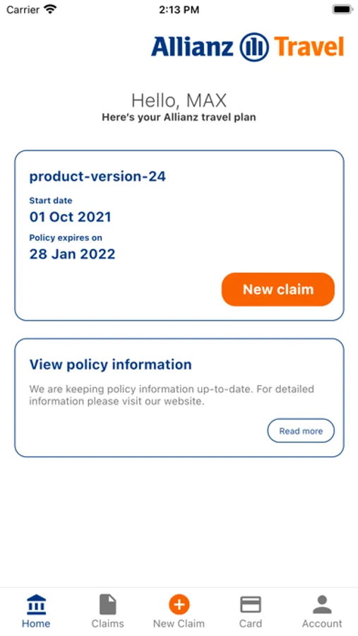Submit claims, track claims progress and access a payment card for eligible claims.