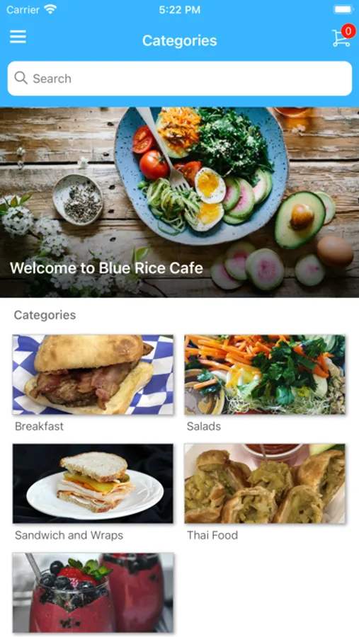The “Blue Rice Cafe” iOS app provides all the information you need to know before heading to us and deciding what you want to try today. Browse through the categories and items to pick what you crave the most.
