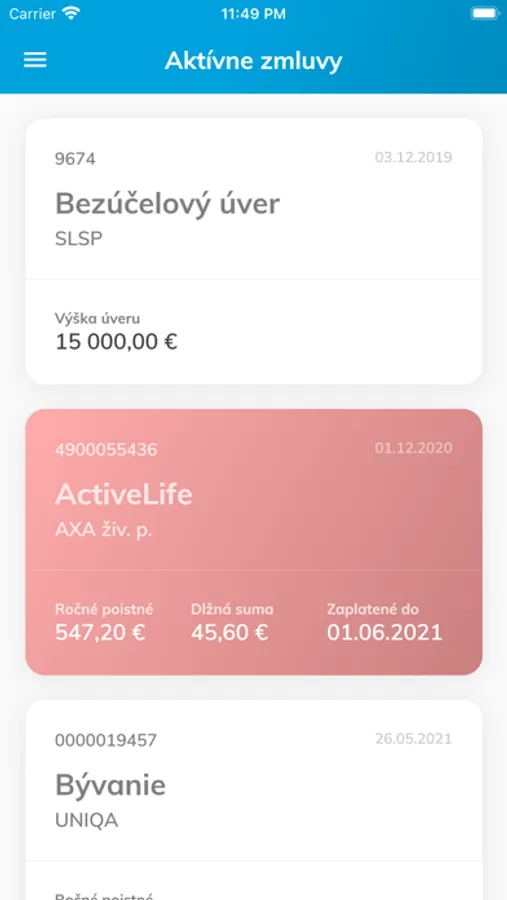 Vďaka modernej a prehľadnej aplikácii Cliip budete mať všetky potrebné informácie o vašich poistných, úverových či investičných zmluvách vždy k dispozícii.