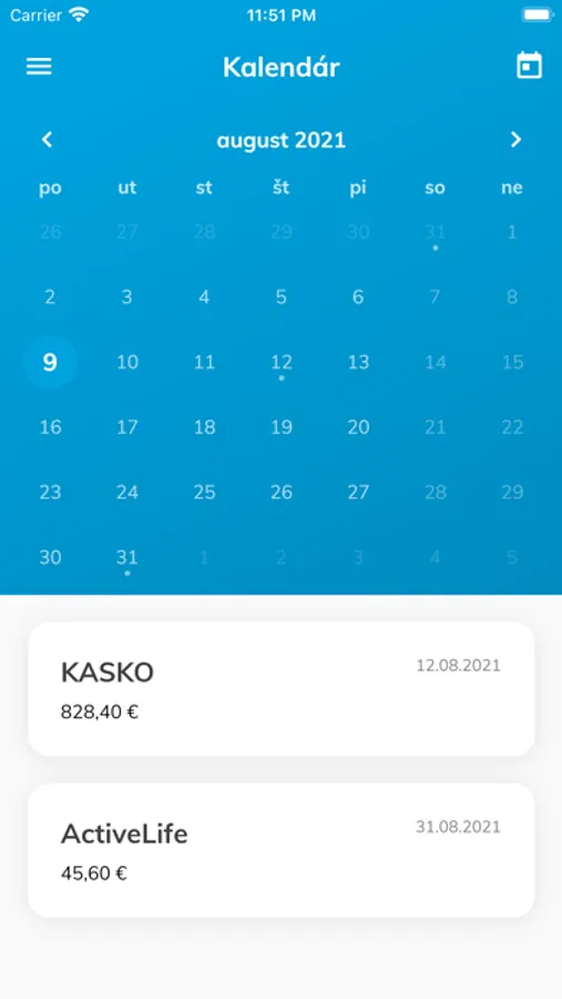 → Kalendár platieb – všetky nadchádzajúce platby budete mať zosumarizované v mesačných prehľadoch.