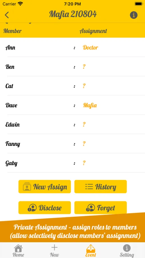 Assignment - assign number / poker card / custom item to members. Allow publicly or privately assign (e.g. Mafia / Werewolf game) option.