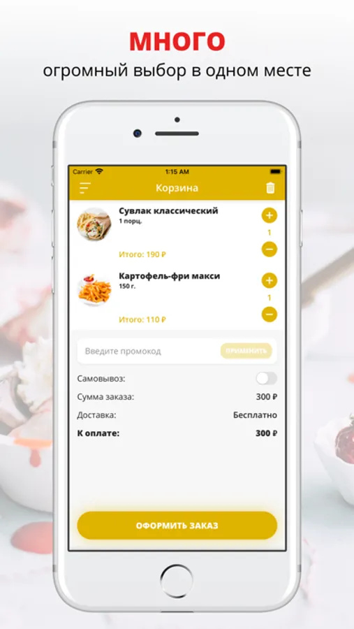 Скачивайте наше приложение, оформляйте заказ и наслаждайтесь любимой едой, где бы Вы ни были! Приятного аппетита!