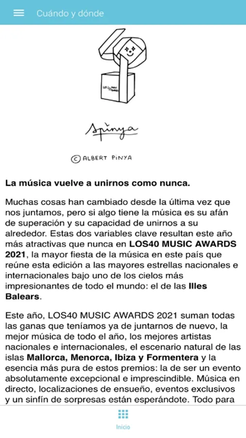 LOS40. Aplicación de uso exclusivo para los invitados, partners y medios autorizados que acudirán a la 16ª edición de LOS40 Music Awards 2021 que se celebrarán en Illes Balears. La App de LOS40 Music Awards proporciona una experiencia enriquecida a los invitados que acudan a los diferentes actos de esta edición incluyendo información de interés, alertas de noticias de última hora, guías de viaje, invitaciones y la oportunidad de sumarse a iniciativas únicas y exclusivas que se desarrollarán en Formentera, Mallorca, Menorca e Ibiza.