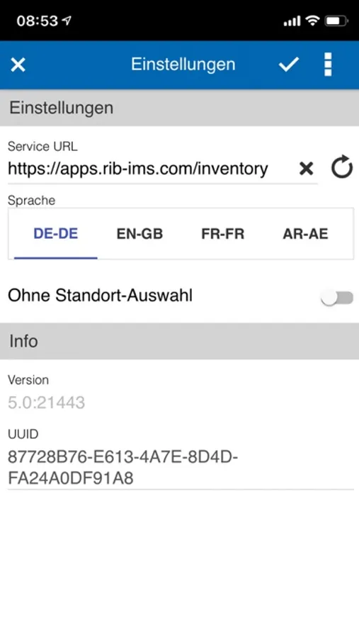 Bitte legen Sie vor der ersten Nutzung Ihre "Service URL" in den Einstellungen fest