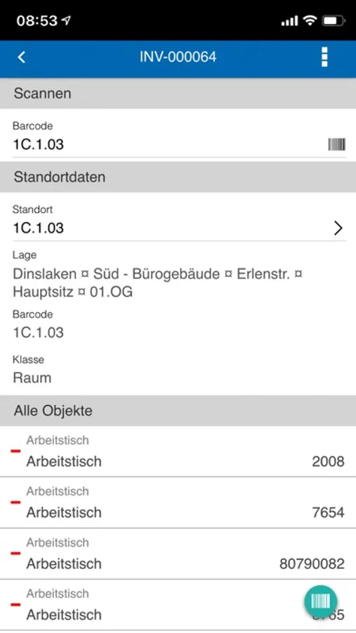 Ist die App Inventory gestartet, übernimmt die App die hinterlegte Vorlage und führt den Nutzer durch den Arbeitstag. Die Vorgänge werden überwiegend per Scanner gesteuert, das System erkennt anhand des Barcodes automatisch Räume und kann von diesen auch Inventar oder Anlagen unterscheiden. So können Smartphone und Tablet meist in der Tasche bleiben und allein der Scanner für die Inventur oder Inventarisierung muss bedient werden.
