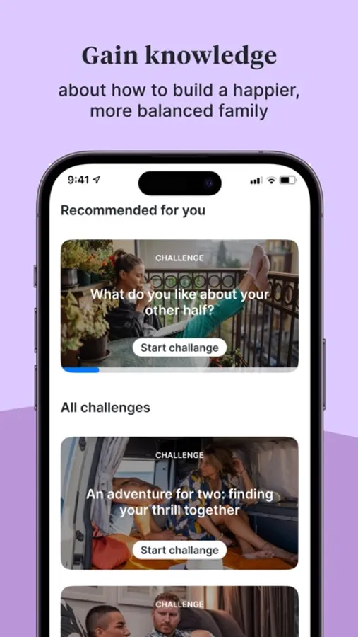 - Challenges: step-by-step programmes to help you develop new paths in your relationship