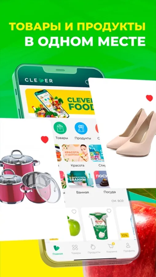 Clever Market – казахстанский маркетплейс, в котором Вы можете покупать свежие продукты, товары для дома, одежду, бытовую технику, косметику и многое другое с доставкой в 1 день. И все это в одном приложении!