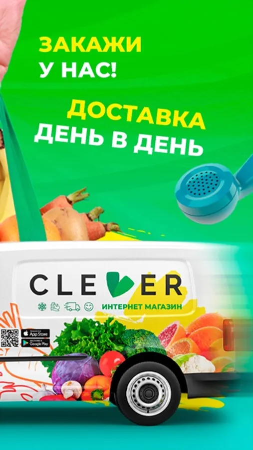 В приложении Clever Market Вы сможете найти то, что Вам нужно! А мы доставим это ЗА ОДИН ДЕНЬ!