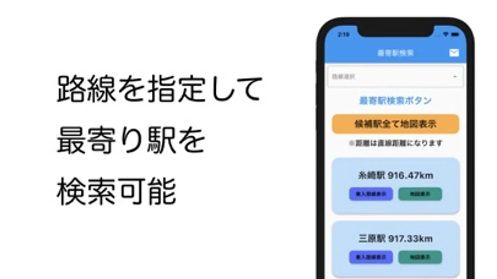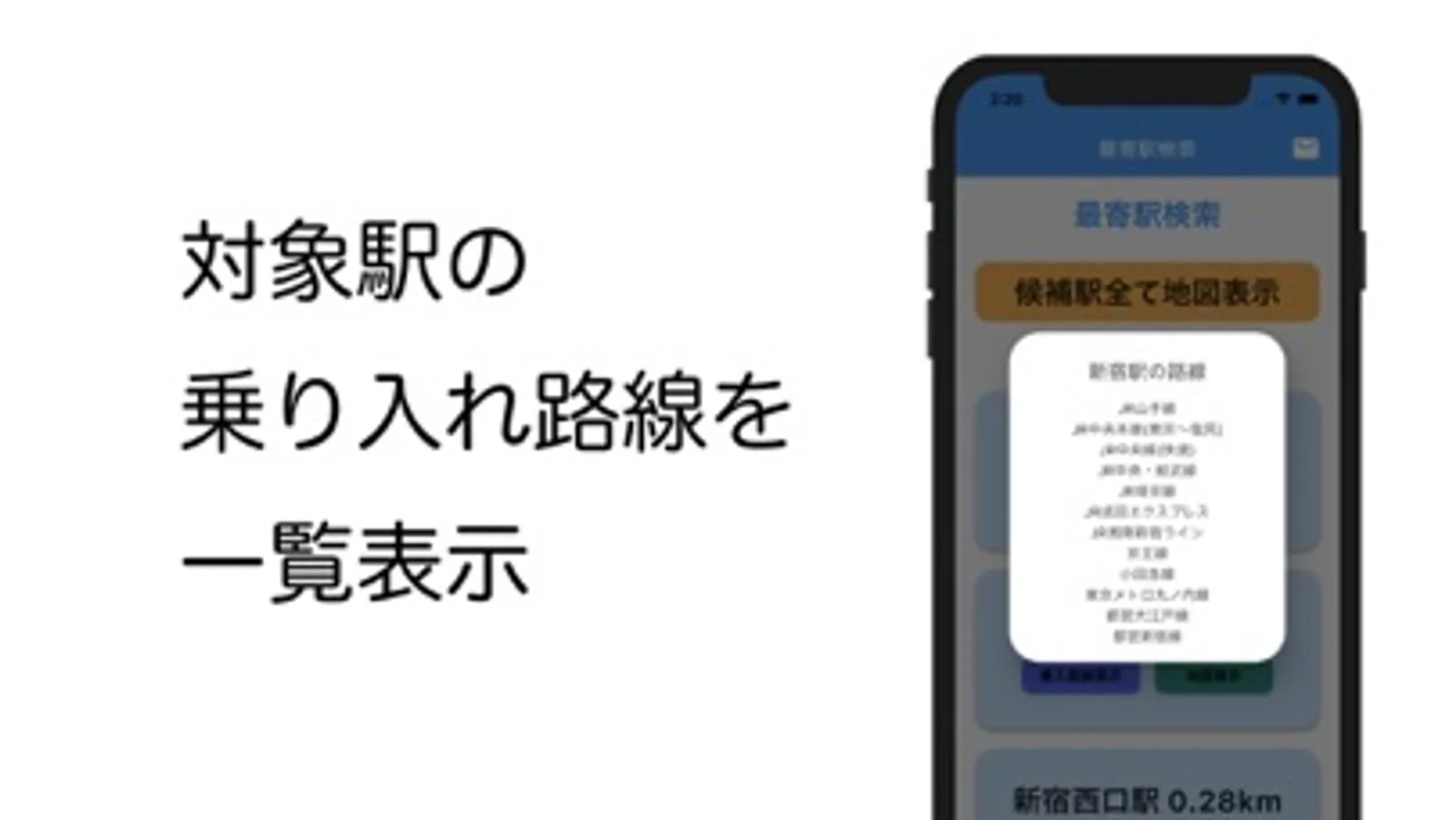 本アプリは、現在地から近い最寄り駅を近い順に5つ検索することができます。また、検索された駅の乗り入れ路線も表示できるため、近いだけでなくどの駅が便利かについても確認することができます。