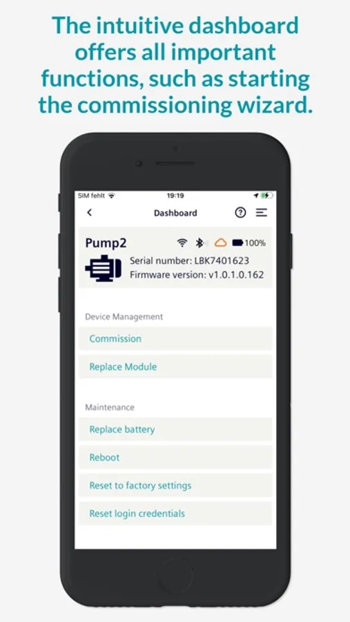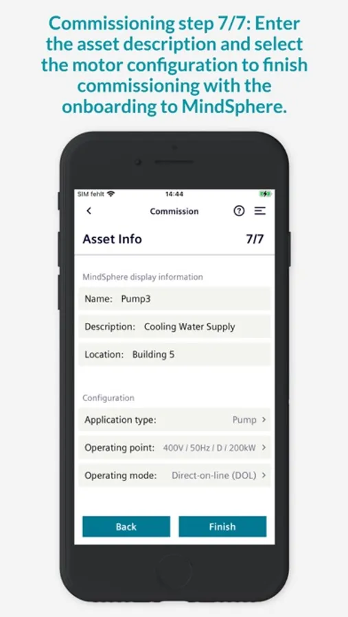 After connecting your mobile via Bluetooth, a commissioning wizard will guide you through the complete process of connecting the SIMOTICS CONNECT 400 module to MindSphere and configuring it based on your performance requirements.