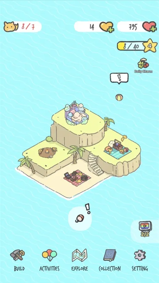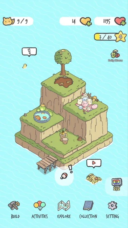 Collect diaries as your fluffy interact with the structures, you can also fish for cute little sea creatures on the different isle.