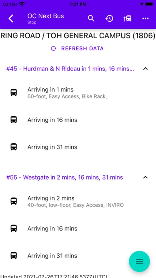 Multiple bus information provided including time to for the next bus to arrive and details on the bus speed and other information similar to that (see screen shots for examples).