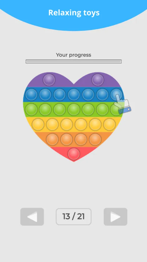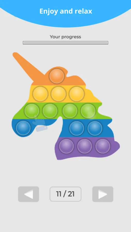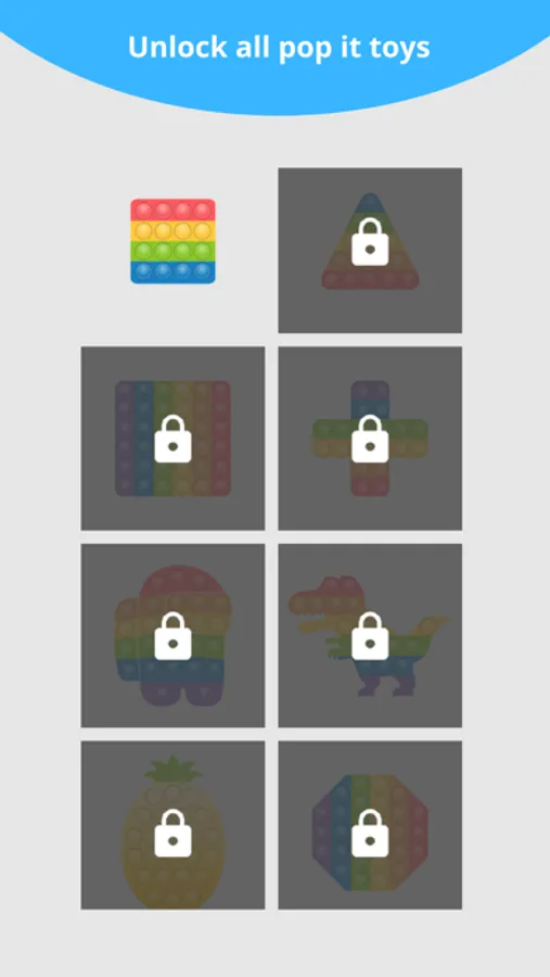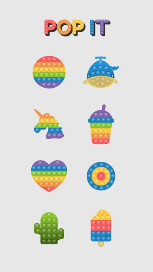 Advance in all the levels, every time you finish a pop it the next one is unlocked, complete them all and increase your collection of pop it toys.