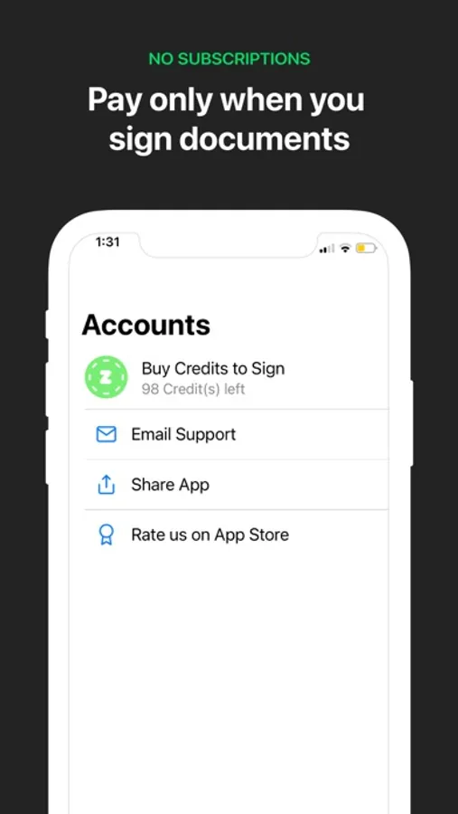 - Pay only for the documents you sign, no subscriptions. All unused credits are retained and can be used to sign documents anytime.
