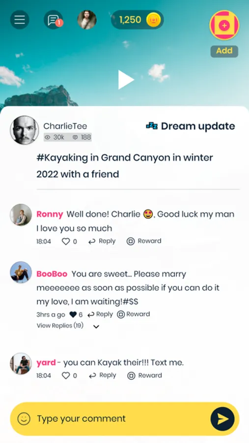 Dreemz is the social platform for sharing dreams and mutual help, in which people document the journey to fulfill their dreams and receive help and support from a global community of personal development, a community that changes the world.