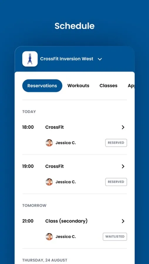 For members of CrossFit Inversion West to reserve their place in a class, sign up for gym events, and general account management like updating headshots and credit card on file.