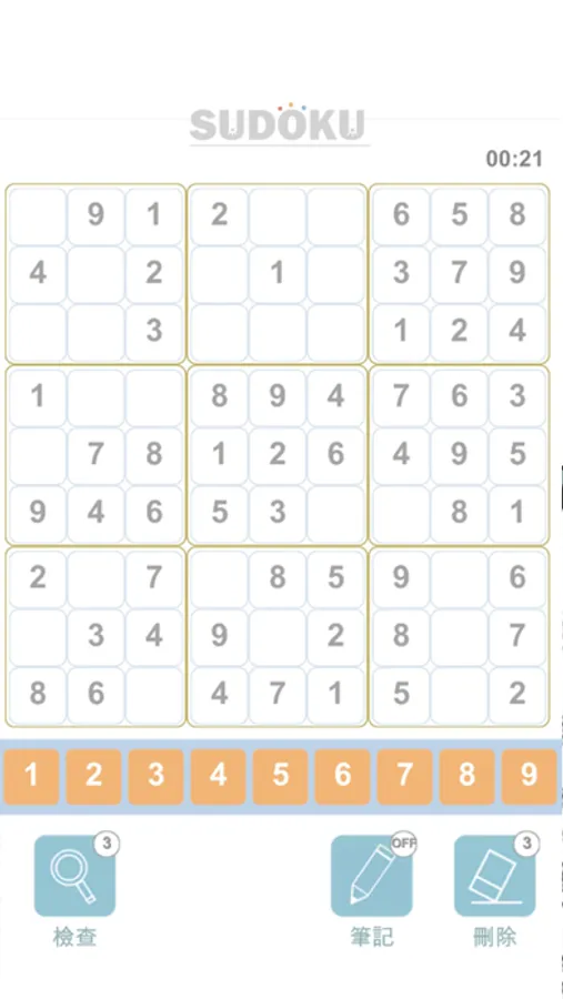 SUDOKU是一款數字填空遊戲,利用已知的數字,推算出剩餘空格的答案.