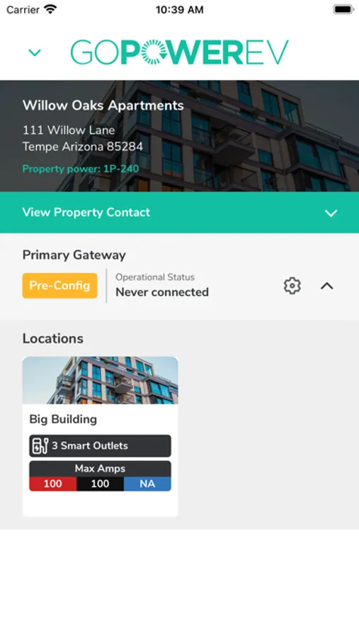 The GoPowerEV Installer app provides electricians with the commissioning tools necessary to install GoPowerEV charging infrastructure at multi-family apartment buildings. GoPowerEV provides cost-effective, hybrid Level 1 and Level 2 Charging. The app tells the electrician user when properties are ready for installation. With the app, electricians can configure Powered and EV-Ready spaces and set up the network connectivity for charging devices.
