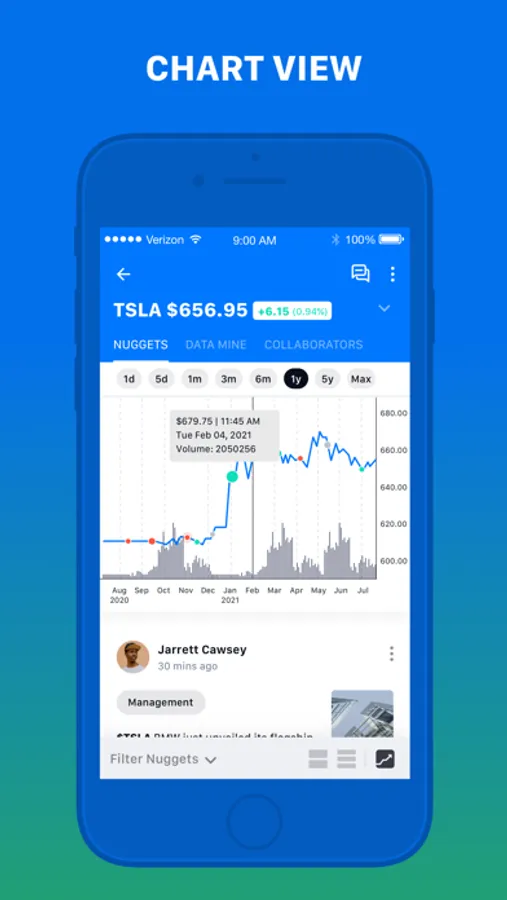 Watch lists, real time quotes, news feeds from Benzinga, wire services, social feeds from Twitter and Stocktwits, dedicated chat rooms for each stock, event calendars, and more. Users add nuggets of information which then get validated by the community, measured for impactfulness, and can be visualized on charts.