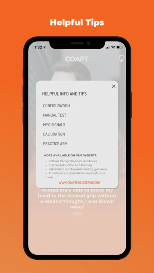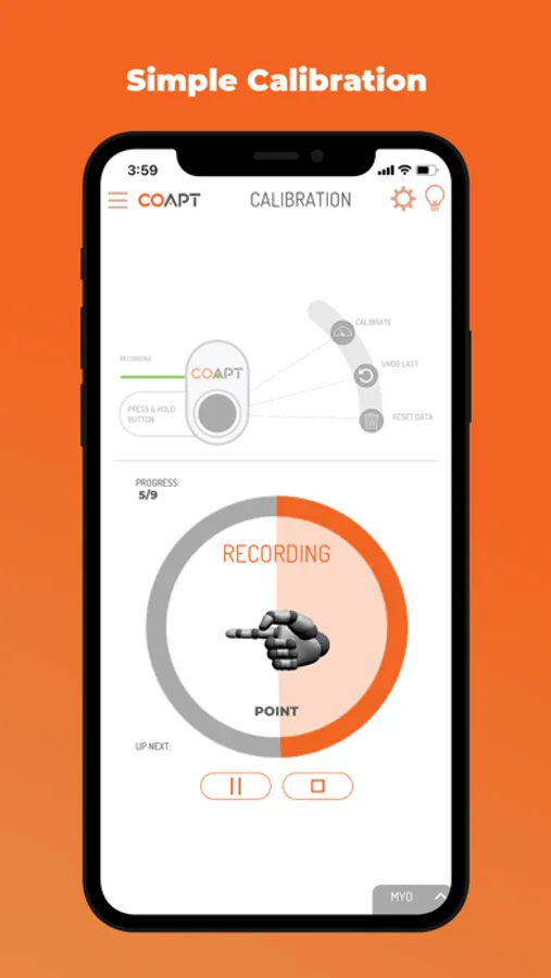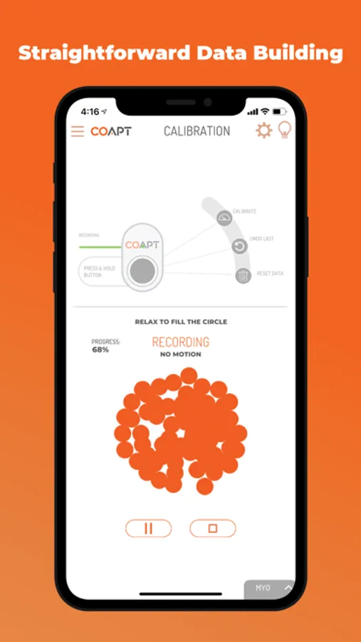 Control Companion™ is a mobile, fully functional app for at-any-time calibration, setup, and training/practice with a Coapt pattern recognition system. New and developing users will benefit from its many configuration and diagnostic tools, helpful embedded information and links to learning content, as well as a real-time display of myoelectric patterns and training & game tools.