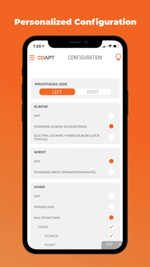Control Companion™ is compatible with any Coapt Gen2® system built into a prosthesis or any Coapt Gen2® Handheld Evaluation Kit or Demonstration Stand.
