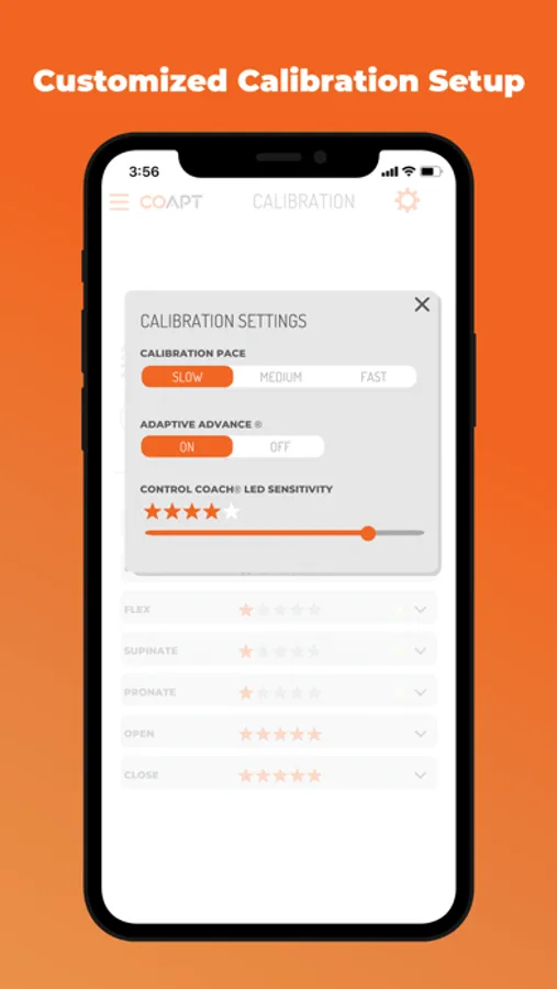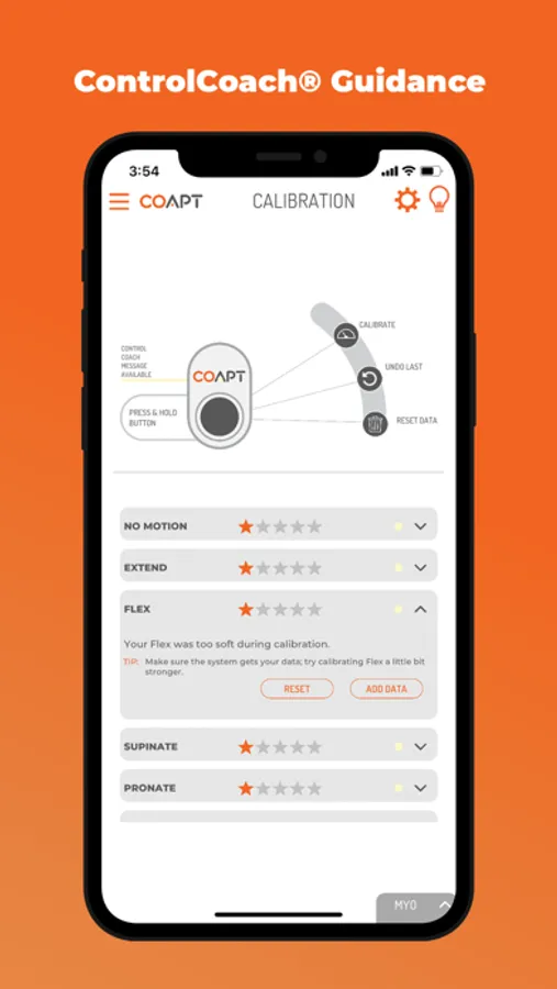 All users will love Control Companion™’s full-feature pattern recognition calibration tools – effective calibration is key to a user’s intuitive and personalized prosthesis control using Coapt. Calibration EMG data be provided for all motions at once or one at a time. New data can be added to existing myoelectric patterns to achieve more robust control or data can be cleared for a fresh start. Control Coach® within Calibration provides excellent feedback to the user on how to improve prosthesis control via A.I. analysis of any calibration data provided. Users can “undo” their most recent calibration and can save a current control state to recall at a later date.