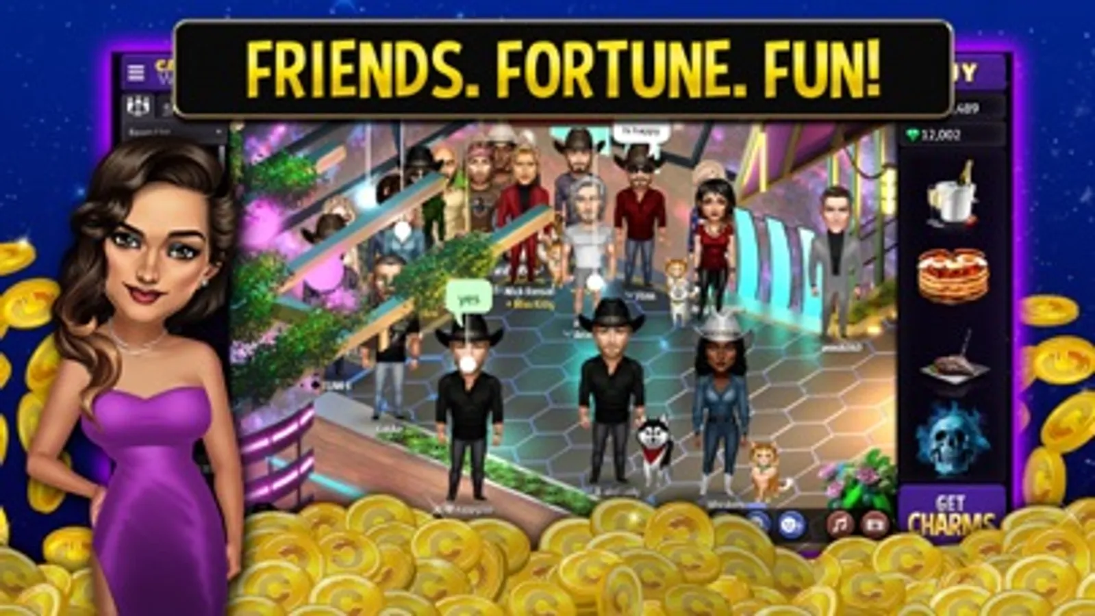 Casino World has the BEST Slots experience on mobile! Casino World is a massively multiplayer casino RPG that provides the deepest, most satisfying casino & slots experience! Become a card shark in Texas Hold’em, a Video Poker whiz, or a Slots CHAMPION! Compete in season challenges, enjoy live parties, try amazing avatars, dance moves, and so much MORE! Live your best life in Casino World today! Hang out with your friends at the coolest parties!