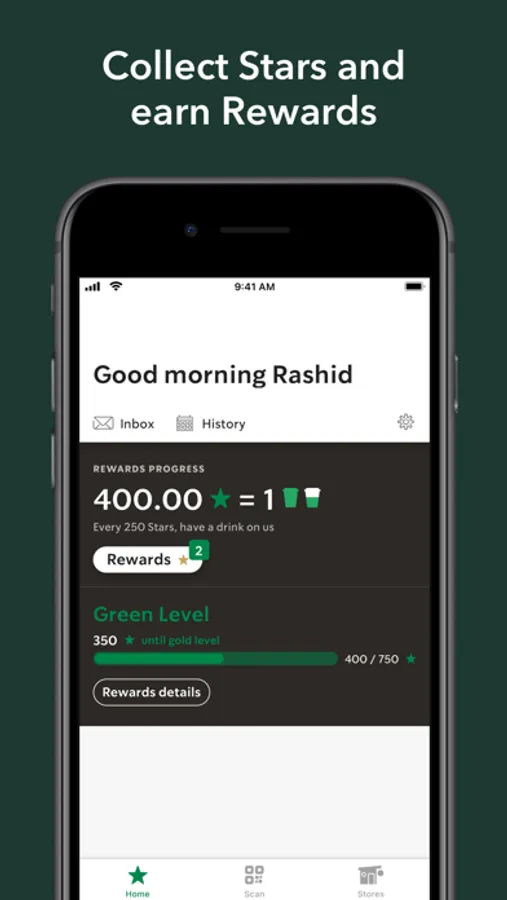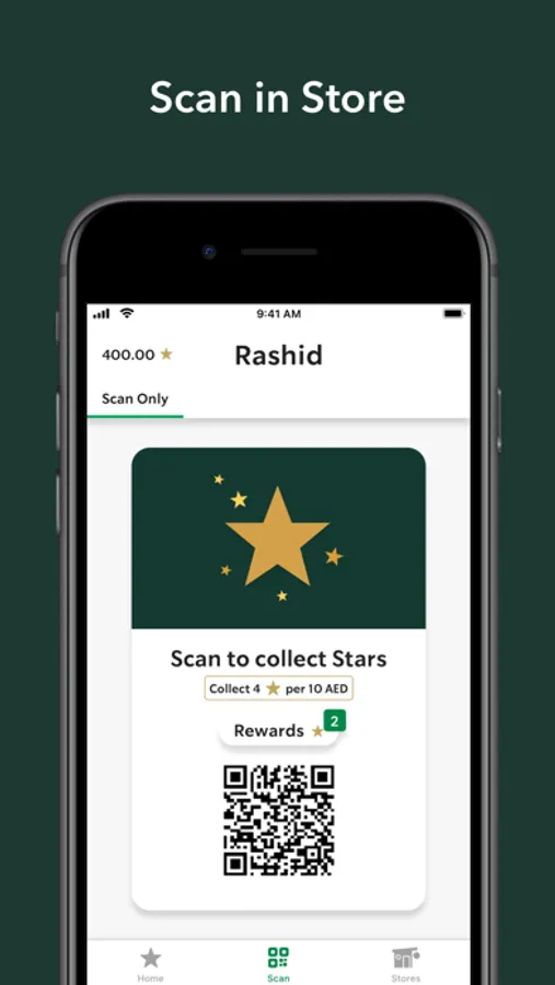 Scan the QR code on your app every time you make a purchase at any participating Starbucks store in UAE to collect Stars; you get 4 Stars for every 10 AED spent!