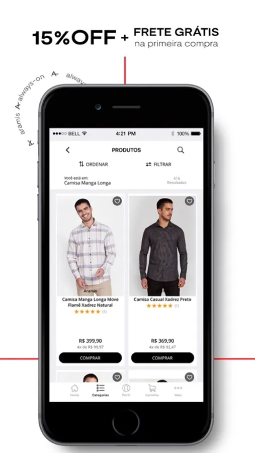 O aplicativo da Aramis reúne todos os produtos e coleções oferecidos nas lojas de roupas masculinas e no site. Acesse o nosso catálogo e confira as principais novidades e lançamentos, com ainda mais agilidade, praticidade e segurança.