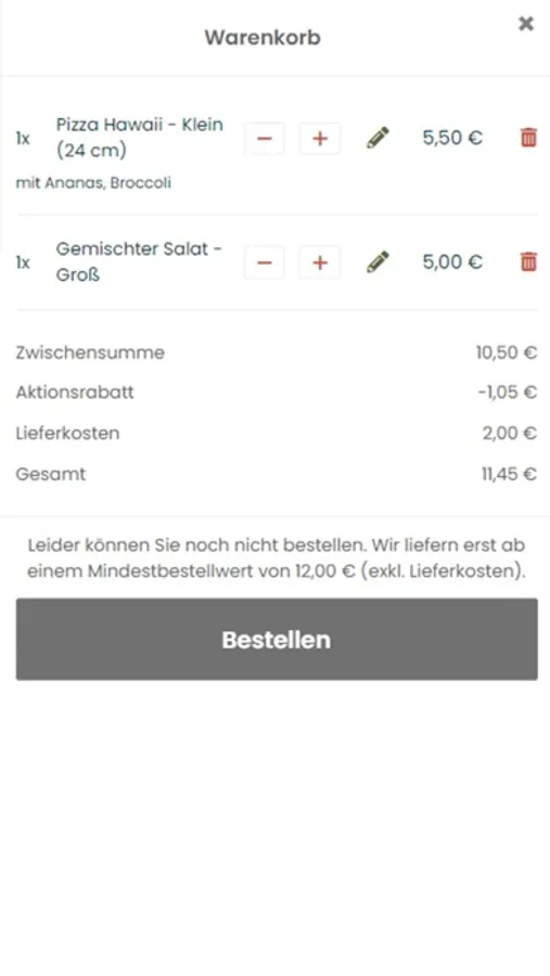 Zudem bietet orderio Ihnen die Möglichkeit mit Ihren Kunden in Echtzeit zu chatten, die Speisekarte zu bearbeiten, Liefergebiete festzulegen, rund um die Uhr Push Nachrichten an Ihre Kunden zu senden, Rabatte zu gewähren, Lieferzeiten anzugeben, Statistiken einzusehen und vieles mehr.