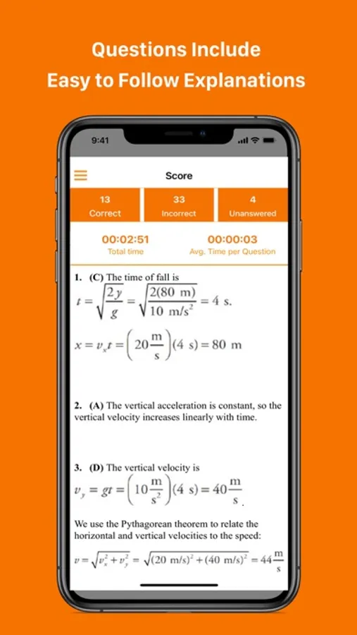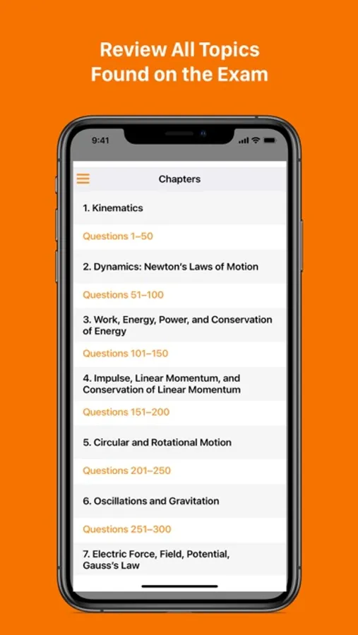 This free application includes all questions in Chapter 1 - Kinematics (1-50). The remaining 450 questions are available through an in-app purchase of $15.99.