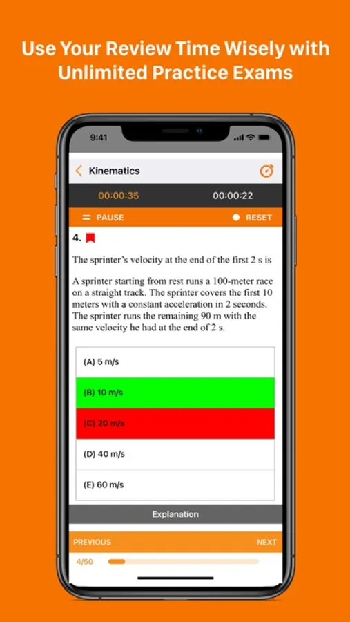 -In the Timed Exam mode, time yourself and review the answers after the time is up.